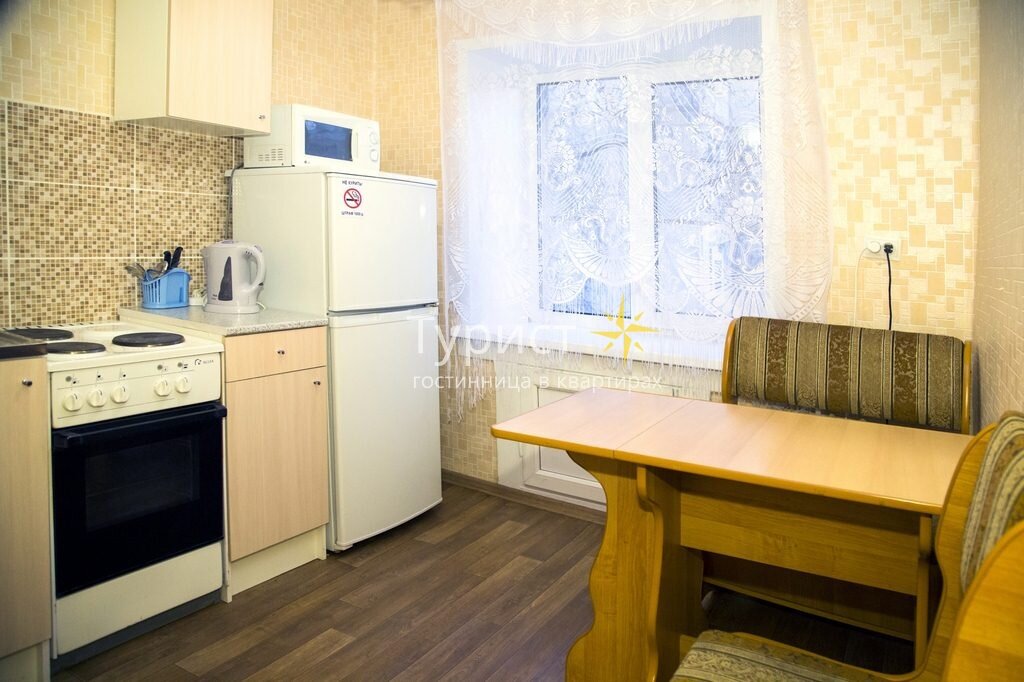 Мягкий уголок позволит расслабиться перед телевизором, а удобная кровать – выспаться перед напряженным или активным днем. Кухня обустроена столами и шкафами, укомплектованными столовыми приборами, столом для принятия пищи, окруженным диванчиками, холодильником для хранения еды и напитков, а также микроволновой печью. Санузел довольно просторный, хотя и совмещенный, оснащен машиной автомат, а также полотенцами для каждого гостя. С балкона открывается ландшафтный вид на город.